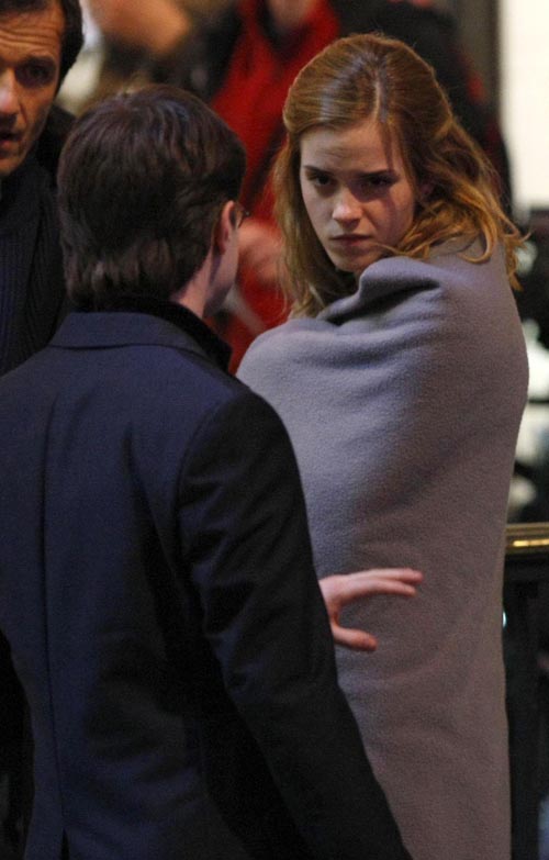 Надпись: 04-21-09 London, UKEmma Watson, Daniel Radcliffe and Rupert Grint pictured filming 'Harry Potter and the Deathly Hallows: Part I', on location in central London. UK...