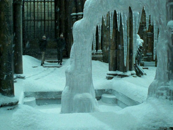 Двор зимнего Хогвартса