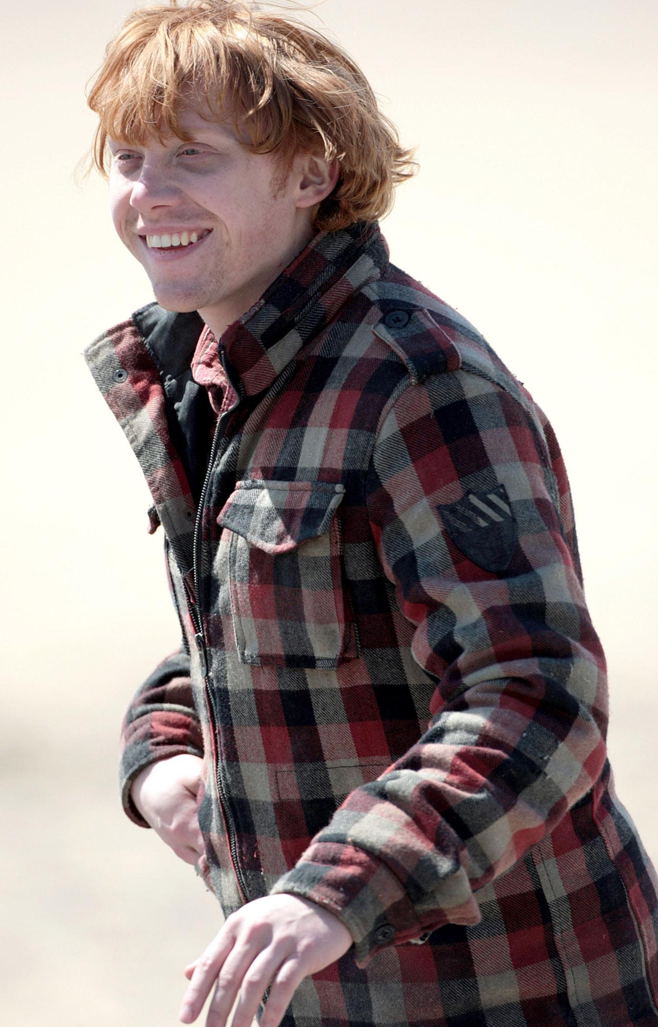 Надпись: Rupert Grint who plays Ron Weasleyfilming on the Pembrokeshire Coast set of 'Harry Potter and The Deathly Hallows'